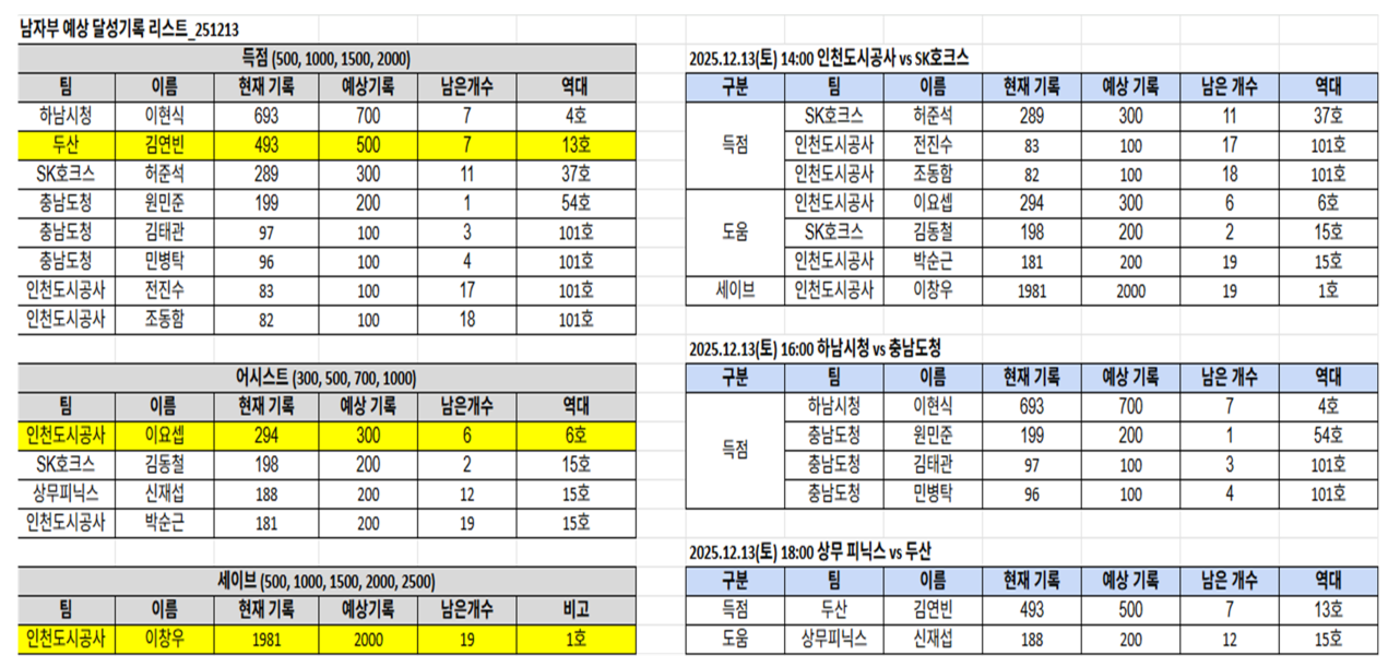 12월 13일 인천광역시 선학체육관에서 신한 SOL Bank 25-26 핸드볼 H리그 남자부 2라운드 제2매치 세 경기가 열린다. 이번 매치 최고의 이벤트는 연승 행진을 이어가고 있는 선두 SK호크스와 2위 인천도시공사의 맞대결이다.